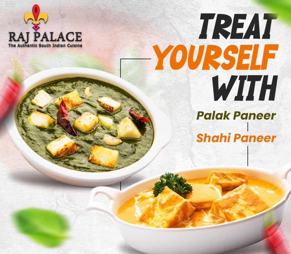 Raj Palace Royal Oak location is a modern Indian restaurant inspired by an age-old approach to dining. It is instrumental in changing the perception of Indian cuisine, offering guests an authentic fine dining experience with discrete service and tantalizing food. The menu is a gastronomical journey throughout India, with dishes carefully handpicked for their cultural heritage and authenticity. They emphasize South Indian culinary history combined with contemporary style. Their spices are specially selected and hand-grounded, bought directly from the source in India through their subsidiary company, The Raj Foods Inc.